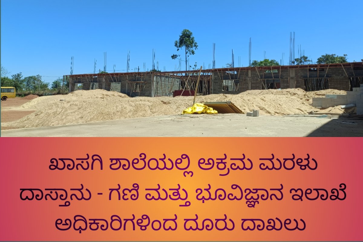 ಕ್ರಿಯೇಟಿವ್ ಇಂಟರ್ ನ್ಯಾಷನಲ್ ಶಾಲೆಯಲ್ಲಿ ಅಕ್ರಮ ಮರಳು ದಾಸ್ತಾನು – ದೂರು ದಾಖಲು. Illegal sand storage at creative international school -File a complaint.